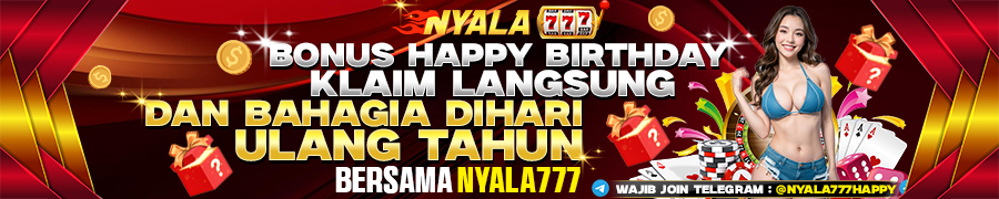 - Untuk klaim BONUS HAPPY BIRTHDAY, harus Screenshot bahwa sudah bergabung di grup TELEGRAM : @NYALA777HAPPY